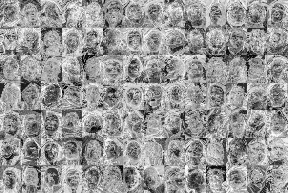 Les images de désastre d’Antoine d’Agata, de bâtiments, et de visages de cadavres pris probablement à la morgue, formant une mosaïque désolante, prolongent, dans un silence éloquent, les réflexions de l’écrivain franco-américain ayant beaucoup vécu à Moscou.