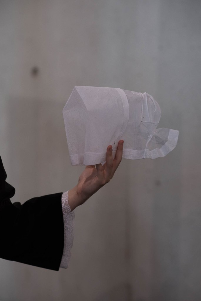 « Entre les mains des habilleuses, remarque superbement Shantty Turck – les textes, accompagnés de photographies issues des archives de l’autrice, sont imprimés sur un papier marron de texture plus rêche -, le corps s’adonne, en confiance, aux gestes experts qui, suivant le fil rouge des générations passées, l’accordent à sa vêture. Cette nécessité commune de couvrir le corps qui permet de rentrer dans la danse sociale, les habilleuses en connaissent tous les secrets. Ce sont les maîtresses de la métamorphose. Dans les coulisses du vêtir, se joue alors le passage du soi au nous, de l’individu à la communauté. Ce moment transitoire, voire initiatique, propice à l’introspection, est ici révélée avec grâce. Ce temps qui est si compressé aujourd’hui, est sous nos yeux suspendu, en image, consacré. »
