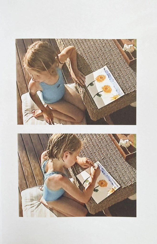 Entre le livre d’artiste et l’album de famille retravaillé, Sunflowers for springs fait aussi le portrait – pages centrales sur papier brillant – d’une sœur photographiée elle aussi dans son processus de transformation, depuis son adolescence jusqu’à aujourd’hui.