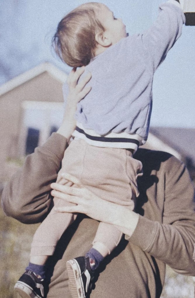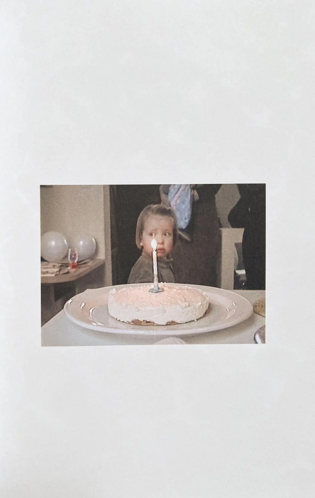 Liza François dispose sur les pages souples de son ouvrage, bordées parfois de feuilles blanches, les signes de sa vie et ceux de ses proches, images prises au caméscope ou contemporaines.
