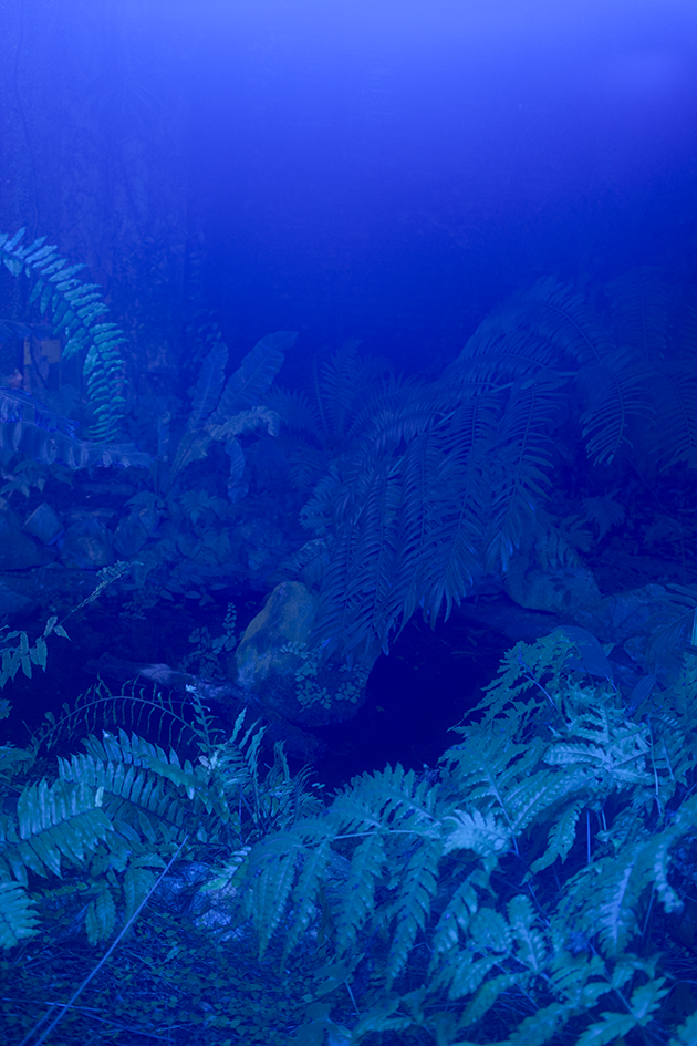 Les végétaux, saisis et sculptés par le flash, y sont fantastiques, faisant penser à une matière psychique secrète dévoilée.