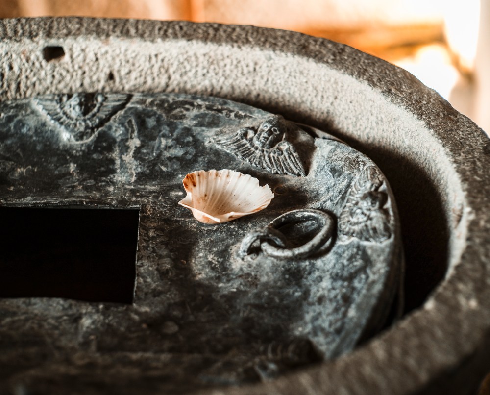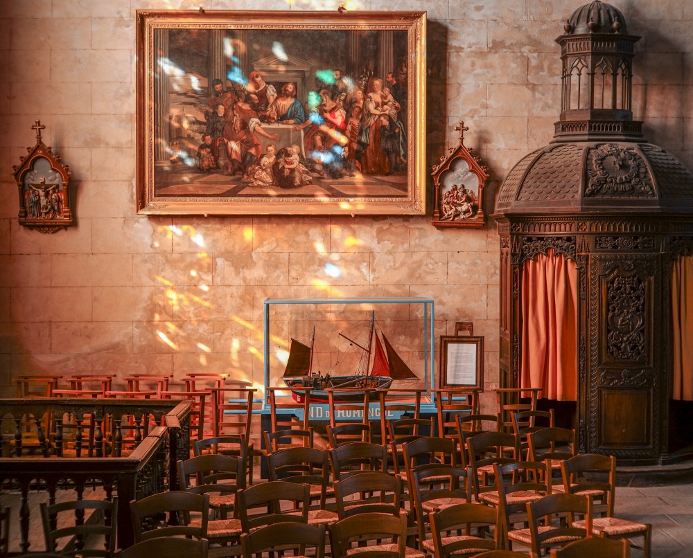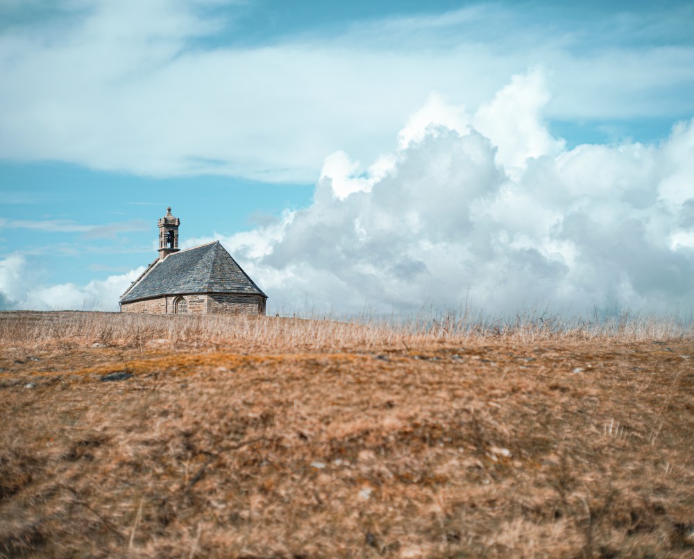 Pas d’insistance dans la bondieuserie, surtout pas, mais une Pietà terrible tachetée de lichens, des dalles de schiste, et des pierres d’église solides bâties au bord des flots.