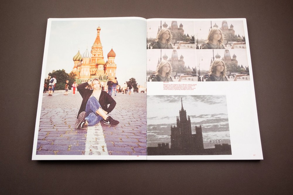 Mise en scène de soi, selfies devant les monuments emblématiques de Moscou, baskets Nike ou simili, yeux bleus, cheveux longs.