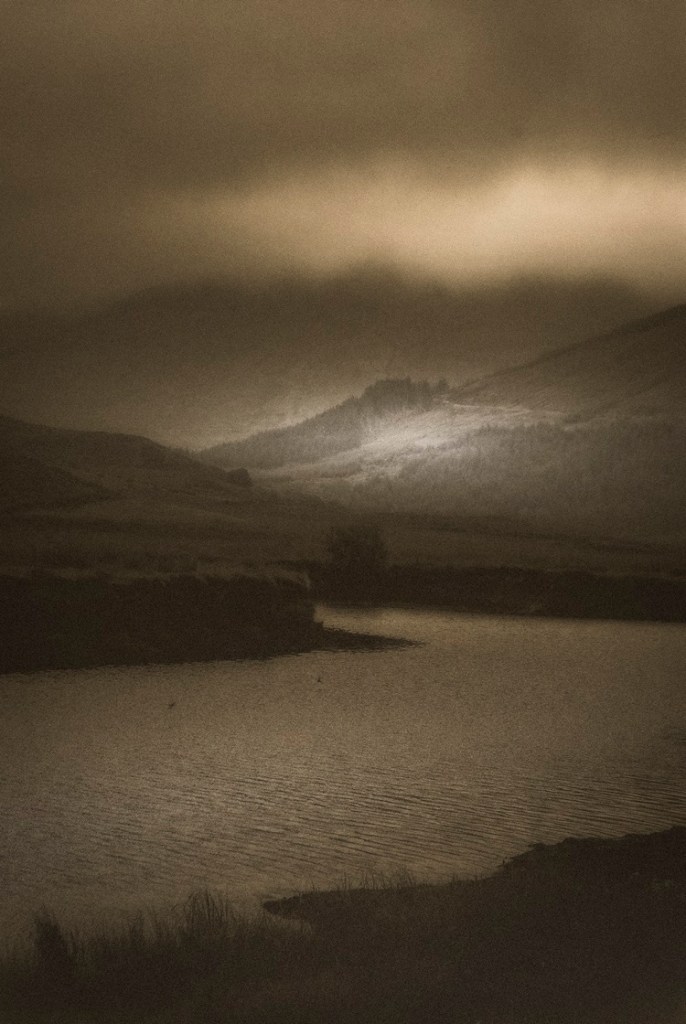 « En Ecosse, le ciel est plus amical qu’en France : il descend. Les nuages viennent nous cueillir, à moins que nous y montions. Quand le brouillard se dénoue un peu, on croit voir des alliances se rompre et d’autres se former. L’Ecosse est un désir : ce que l’on tracte en nous de sombre s’envisage dans le moindre craig [pic escarpé], se libère dans le moindre burn [ruisseau]. Le soleil brume sa lumière et ne dépayse pas les yeux intérieurs : ceux-là suivent les morts du regard, depuis les bosquets de myrtes jusqu’aux pommiers d’Avallon… Une force inquiète double nos pas… On revient de ce voyage non pas toujours voyant, à l’instar de Merlin, mais possédé par une mélancolie inaltérable. L’Ecosse, terre de la fée Mélusine, est un bain révélateur ; et comme tout ce qui est sombre et retient la chaleur, on aimerait y rester toujours. » (Dimitri de Larocque Latour)
