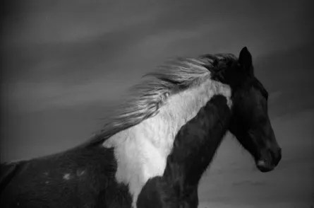 Le corpus est en noir et blanc, les paysages de steppe offrent aux quadrupèdes un espace rappelant celui des pionniers, le vent dans les crinières évoque la part d’irréductible et d’instinct que nous n’avons pas su garder.