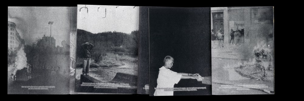 Son fanzine est une dystopie : un ministre d’un gouvernement futur contraint les citoyens à brûler dans un grand brasier collectif les photos de leur passé, ne les autorisant à garder que leur propre portrait.