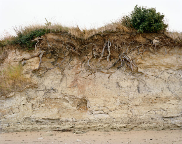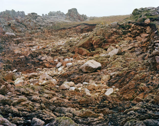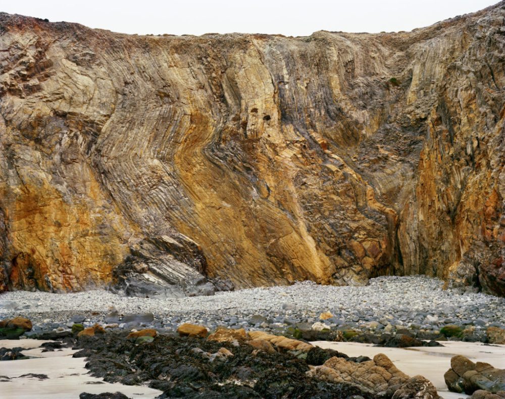 Aurore Bagarry photographie des glaciers alpins, des chemins d’eau dans le Bassin parisien, et des gémellités de pierres faisant des deux rives de la Manche (Côte d’Armor/Sud de l’Angleterre) un même continuum géomorphique.