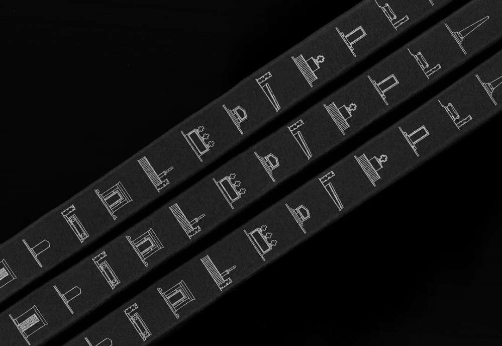 Couverture à l’encre argentée, cartonnage épais se refermant sur le corpus, doubles cahiers juxataposés, l’un relié à la bodonienne, l’autre simplement agrafé.