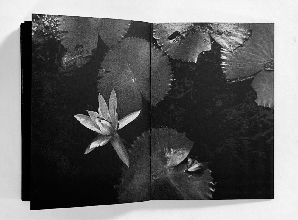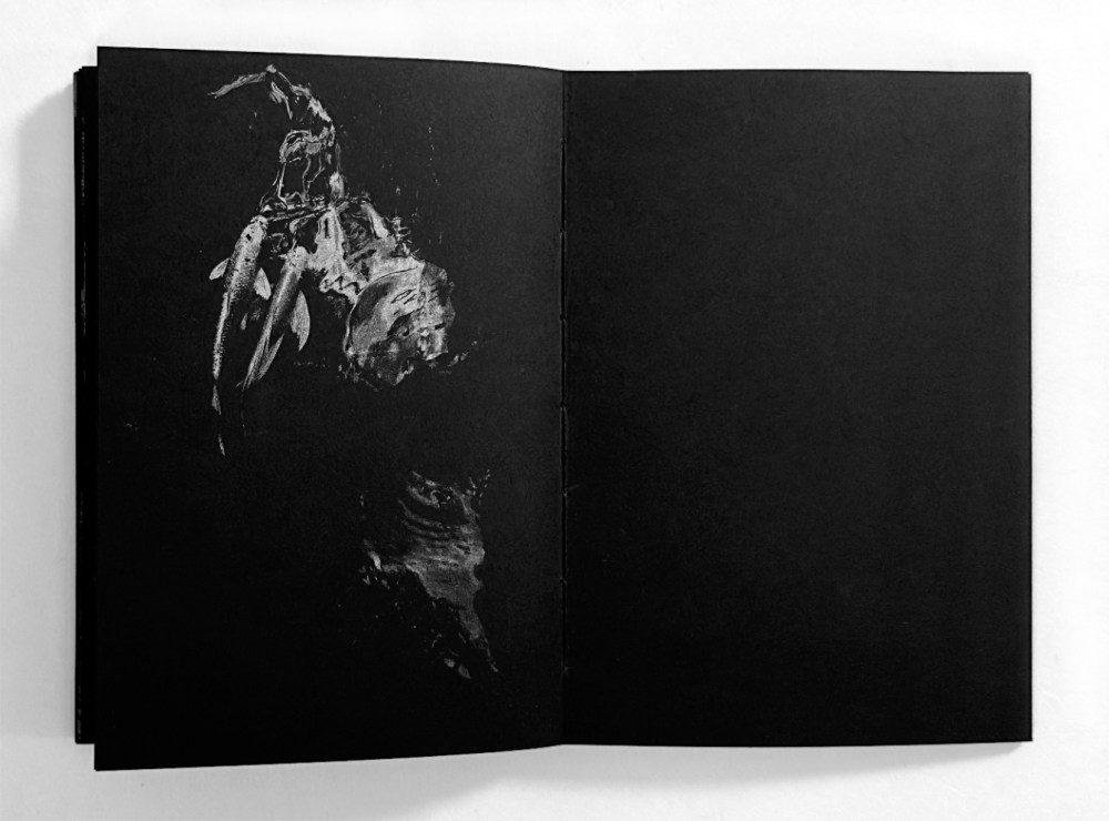 Se présentant sous écrin noir cartonné, cet ouvrage au papier épais – Fedrigoni Sirio Ultra Black, s’il vous plait – se compose de planches imprimées à l’encre argentée, qui sont comme des entrées dans un monde de paix, la nature y étant omniprésente.