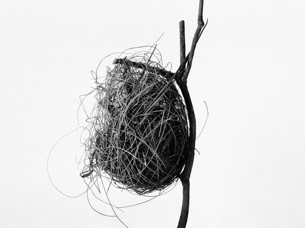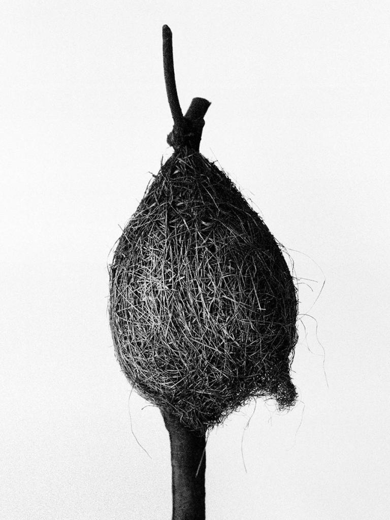 Confié à Nathalie Baetens, le dix-septième titre de cette collection voyageuse – des expositions sont régulièrement organisées montrant la diversité des talents artistiques, et des volatiles enchanteurs – révèle la beauté surprenante des nids, à la façon d’un inventaire d’ornithologue – ils sont photographiés en noir & blanc sur fond blanc/ivoire avec une lumière très douce et une pellicule de haute sensibilité permettant de ressentir les textures de chaque habitacle.