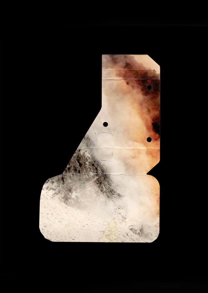 Des photographies découpées apparaissent, ce qui manque offrant à ce qui reste une puissance visuelle accentuée.