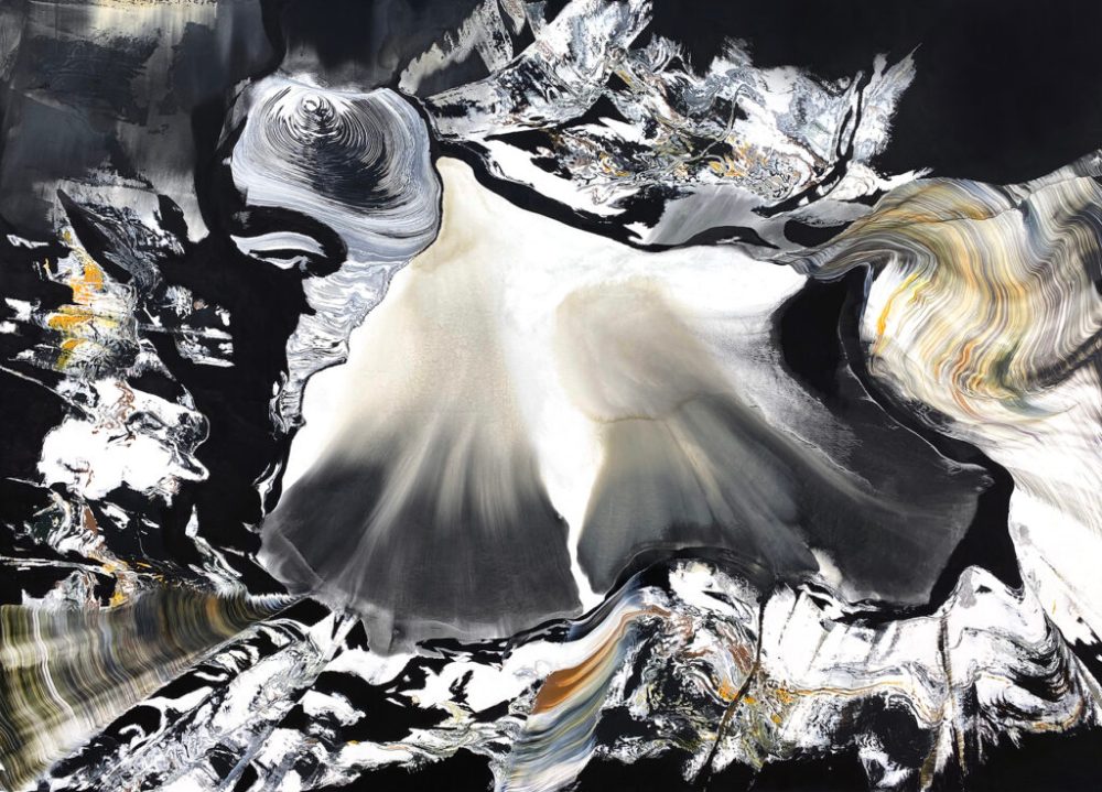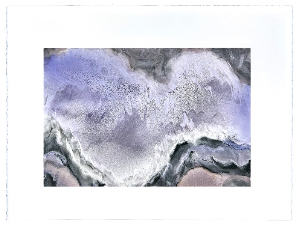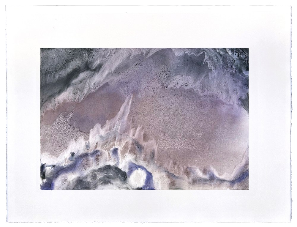 Ecoutons-le : Ces toiles, ces monotypes et ces lithographies sont comme des peaux, comme des mers d’huile, comme des estuaires d’encre, comme des étoffes froncées, comme des geysers, comme des polders, comme des halos, comme des migraines, comme des jouissances, comme le smog de Londres quand rien ne déchire le jour, comme des pollutions nocturnes, comme la macula sur l’œil, comme les ulcérations de l’âme et du corps, comme une huître de Chardin, comme une pulvérisation par Hartung, comme lart qui dans le ciel survient après l’averse, comme l’averse qui charrie de la boue et de la lumière, comme les ecchymoses, comme des palimpsestes qui provent que la beauté se contrefout d’être décrite ou reconnue, que la langue est pulsion et pulsation car – sublime fulgurance de Valère Novarina – la parole ne nomme pas, elle appelle. »