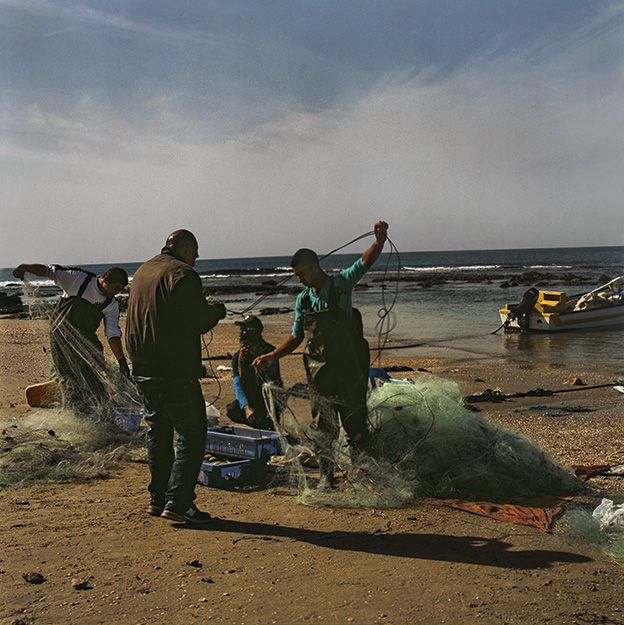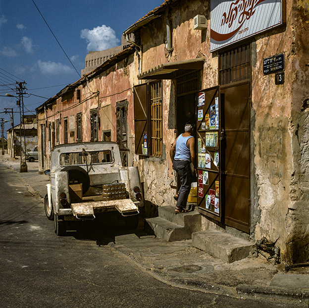 Marchant sur la côte israélienne, de la frontière de Gaza à celle du Liban, l’auteur de Israël Eighties (2016) et de Sanguinaires (2020) a photographié la beauté ocre et bleue des bâtiments et objets érodés par le vent, l’air marin, le passage des saisons.