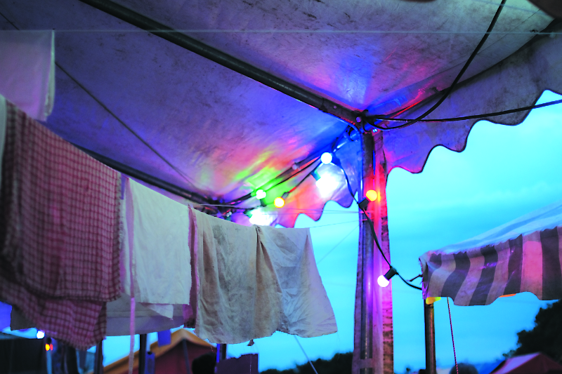 Il y a le bruit des détonations et les appels au secours, mais aussi celui des tambours, la musique de qui croit encore qu’il n’est pas considéré comme un ennemi dangereux.