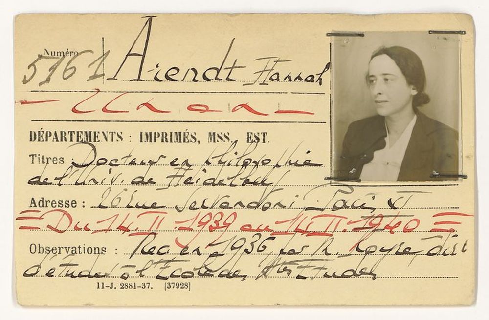 Carte de lectrice d’Hannah Arendt, établie en 1939. © BnF, Archives institutionnelles