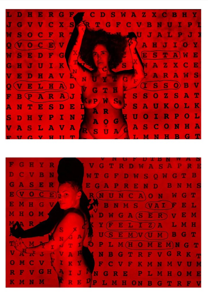 Portraits de femmes de plus de cinquante ans, Caça as palavras – la chasse aux mots – est un essai visuel sur l’impact des mots stigmatisants sur le corps féminin.