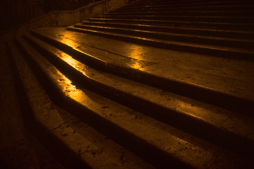 Hervé Gloaguen photographie Rome comme un vaste théâtre que protège une nuit excitante, énigmatique, interminable.