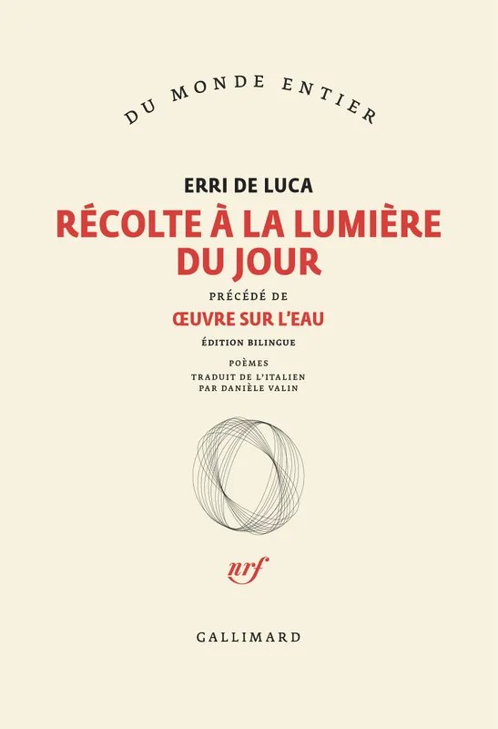 Erri De Luca, Récolte à la lumière du jour, précédé de Œuvre sur l’eau, édition bilingue, traduit de l’italien par Danièle Valin, Gallimard, 2025, 178 pages