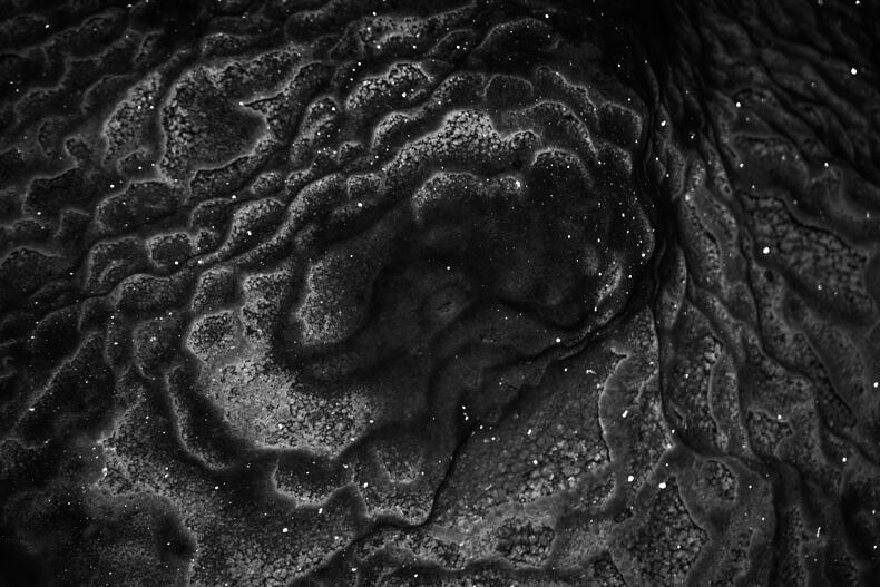 C’est d’abord un vortex, un cosmos, un abysse où tournoient des planctons, ou quelque étincelle de vie, de lumière, de présence.