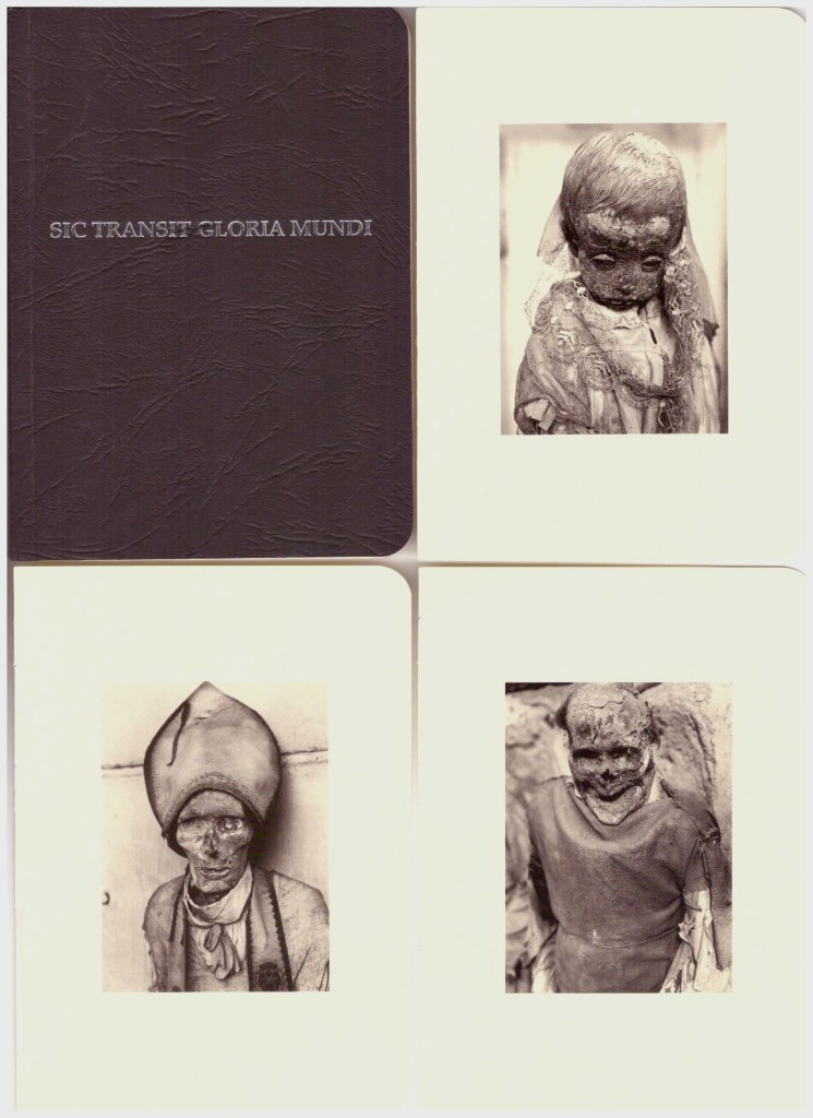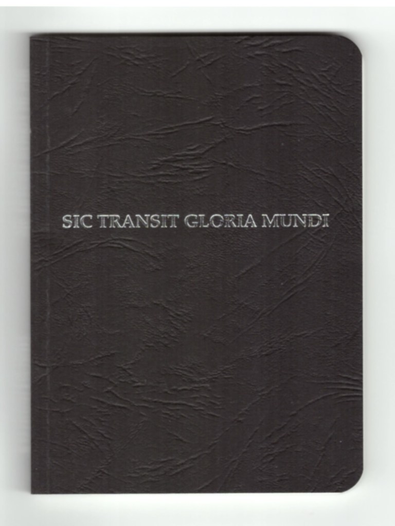 Publié dans un format poche, à la façon d’un carnet Moleskine de petite taille, Sic transit gloria mundi est un memento mori.