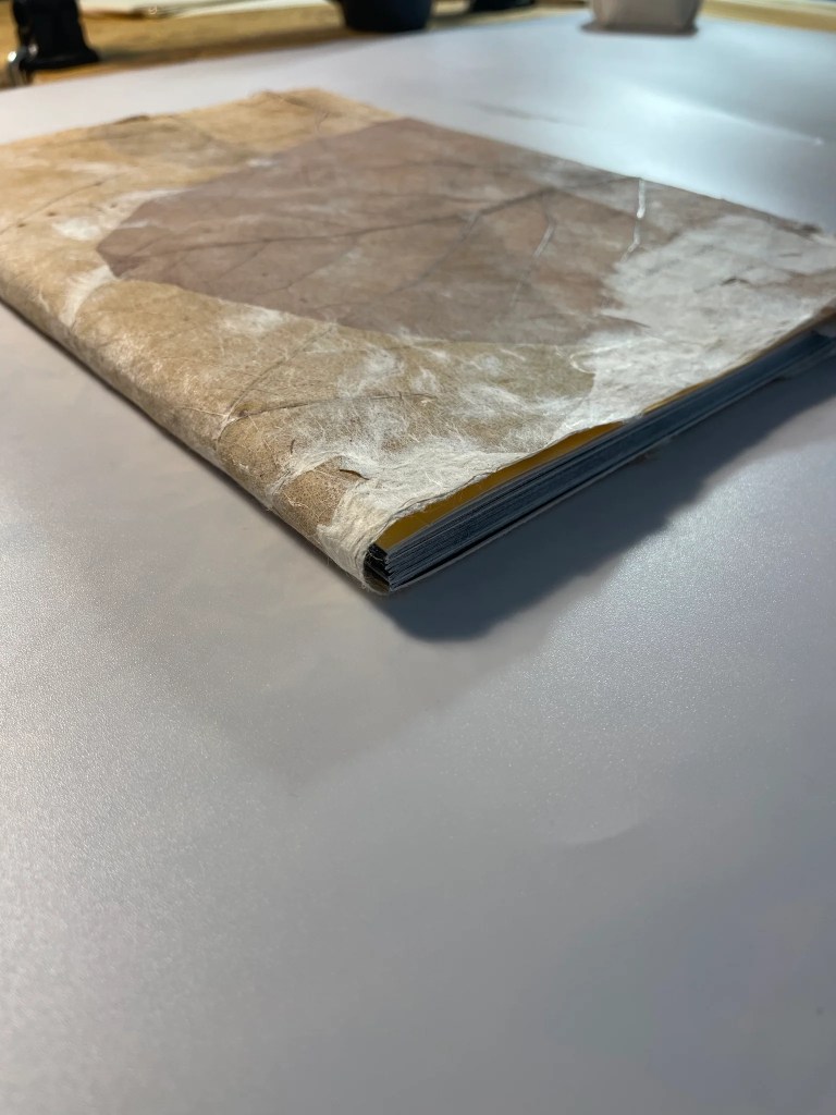 La couverture aux motifs végétaux donne la sensation d’un lé de nature plié sur laquelle la main trouve des chemins, des aspérités, des reliefs.