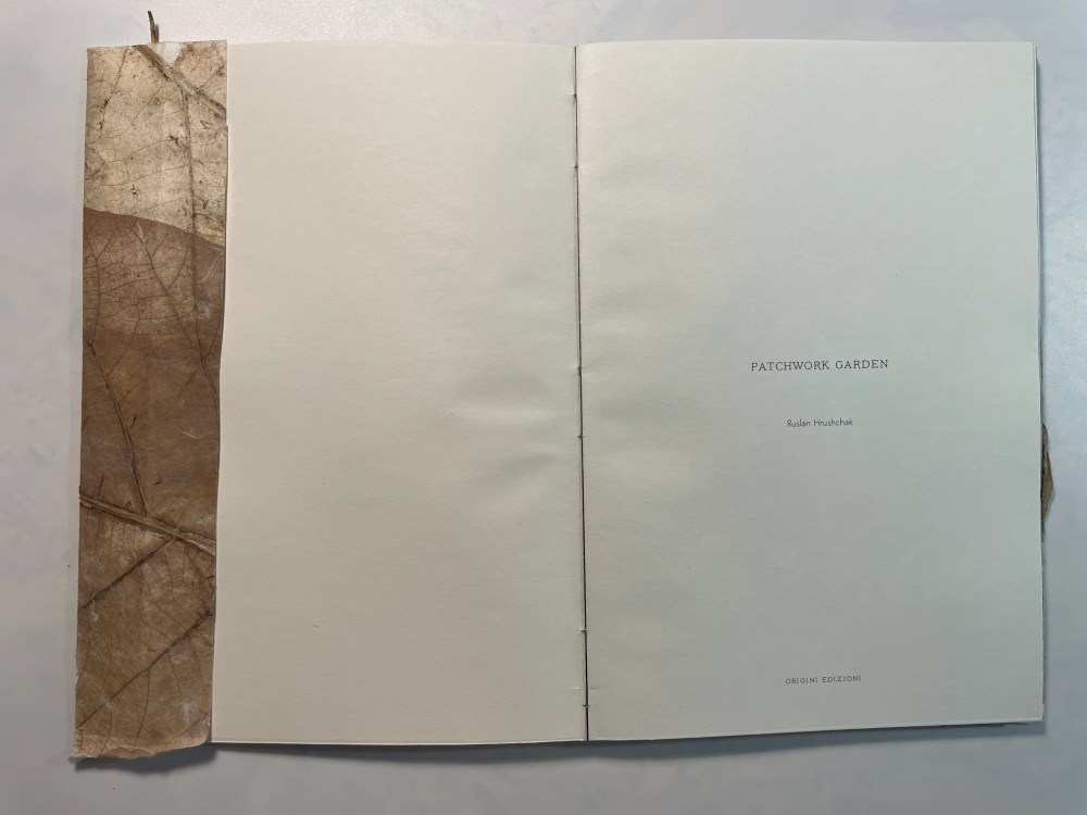 Ruslan Hrushcak, Patchwork Garden, texte Ruslan Hrushchak, editing Ilias Georgidias, book design Matilde Vittoria Laricchia, fabrication artisanale Eugenia Koval, Origini Edizioni, 2025 – 300 exemplaires numérotés