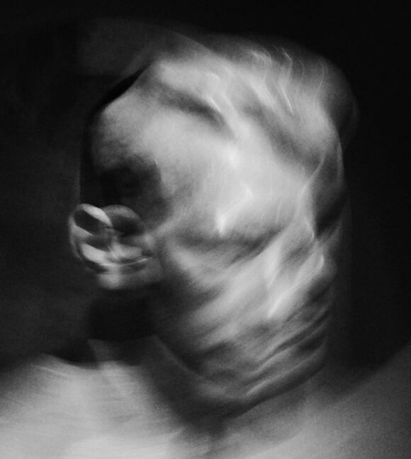 Régis Delacotte regarde des figures qui se dérobent, le jeu avec l’expérimentation de ses tirages indiquant également la précarité de toute chose.