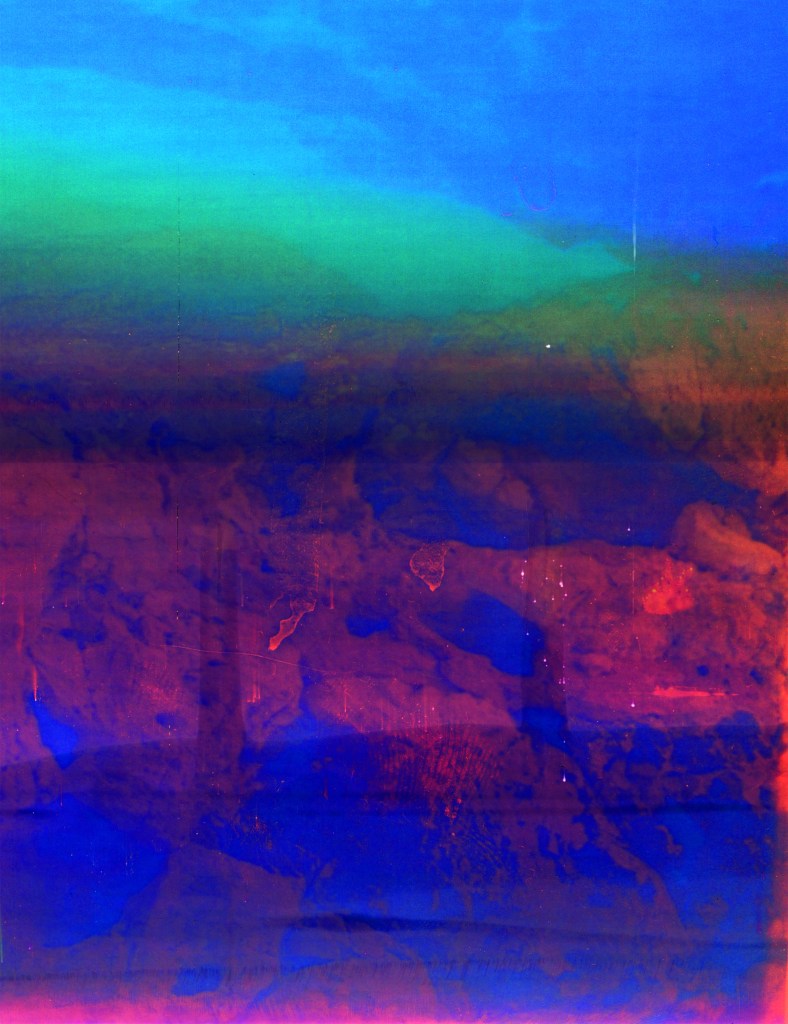 Julie Calbert, sur papier rose et transparents polychromes, fait entrer son spectateur dans le domaine du fantastique géologique, ses images relevant à la fois de l’interrogation scientifique et de la science-fiction éblouie.