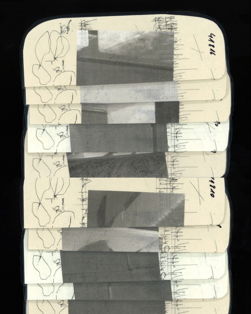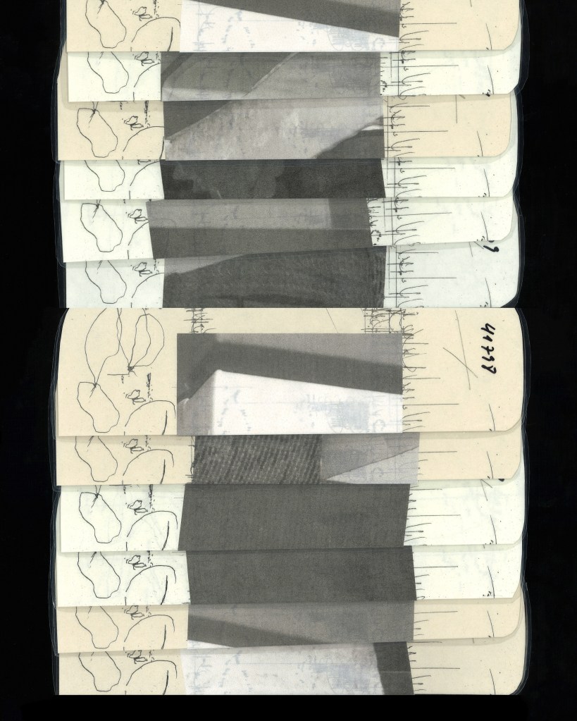 La lecture se fait verticalement, il y a un chiffre écrit au marqueur – 41799 sur l’exemplaire neuf -, de la calligraphie, une image superposée faisant basculer l’ensemble de l’édifice du côté de l’architecture.