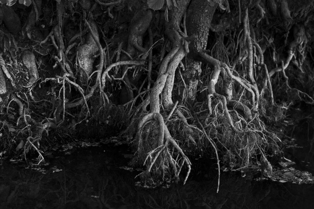 Olivier Culmann a photographié les endroits où se sont déroulés des histoires troubles, ou pas du tout, s’arrangeant avec la réalité, qui est malléable, moins ferme et stable que dents de rongeur. Qui dit vrai ? Le chant des lavandières est-il, près de Vendôme, aussi éloigné que cela de celui des compagnes de Nausicaa découvrant Ulysse sauvé des eaux et des filets ? Tout est calme en apparence, comme dans la maison du pendu de Cézanne, comme un jour de crime ou de tromperie. Des champignons poussent sur le pubis d’une nymphe, qu’un petit mammifère aquatique viendra peut-être dévorer.