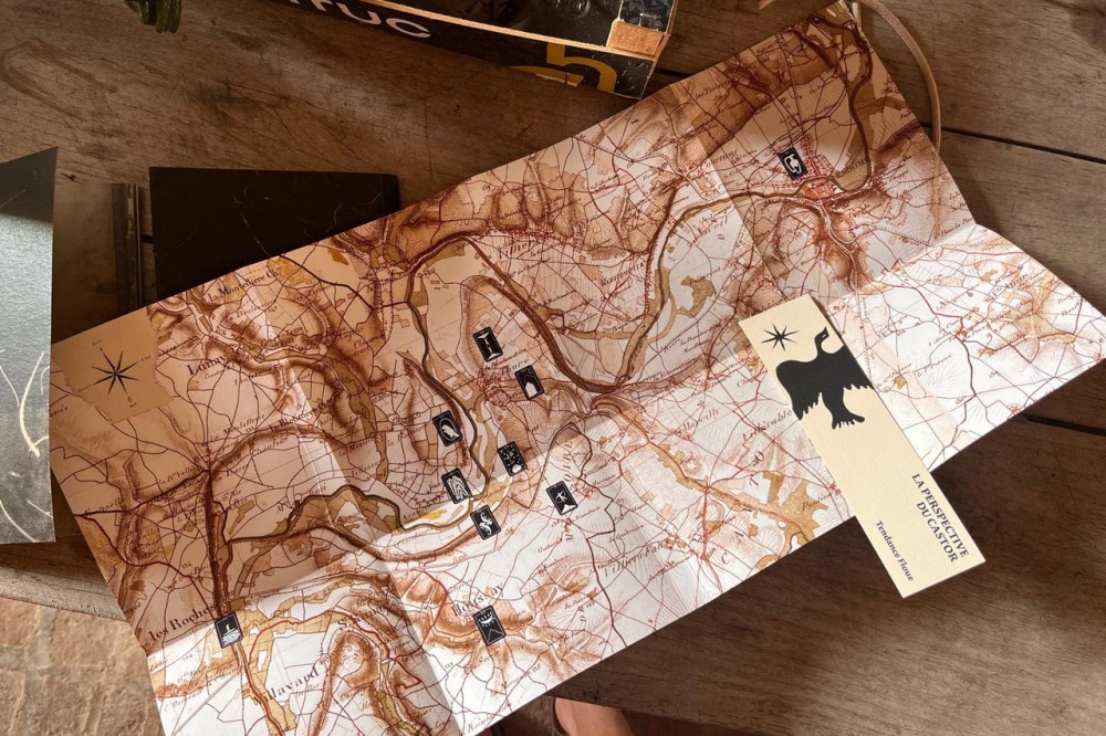 Deux livrets associés sous couverture dépliable montrant à la fois les lieux par une carte (recto) et une sélection de photographies (verso) rendent compte des regards singuliers des artistes en immersion du côté du Moulin de la Fontaine, à Thoré-la-Rochette.