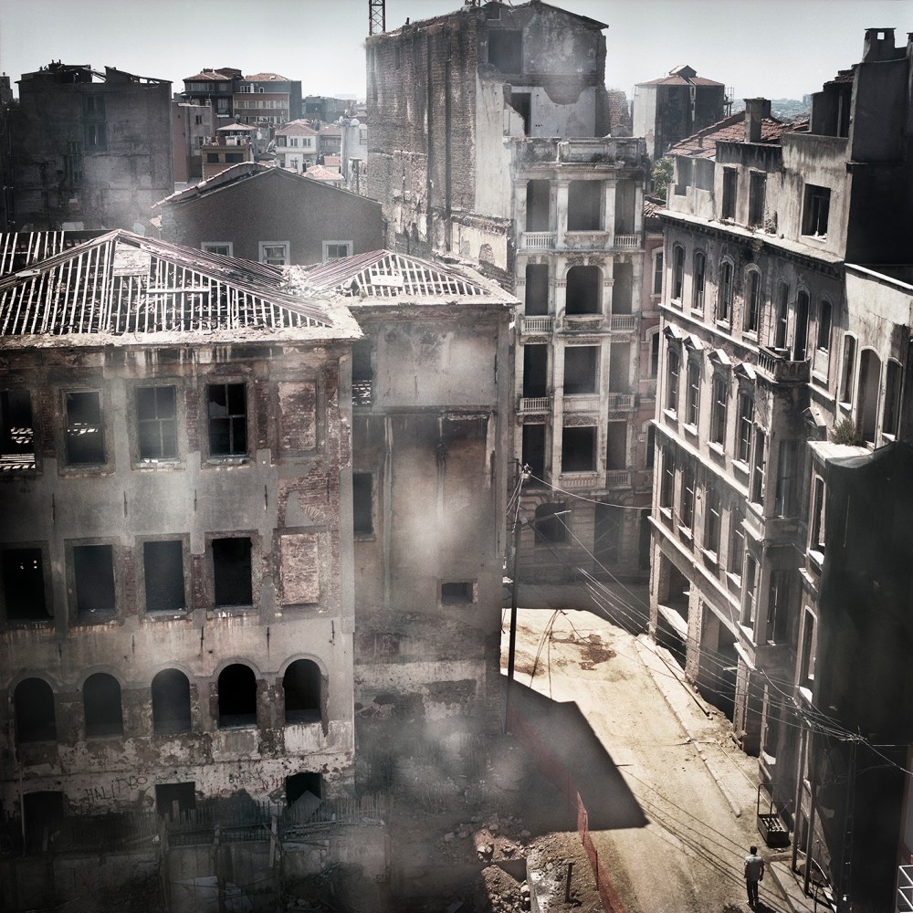 Les misérables peuplent Tarlabasi, que rencontre la photographe, les situant dans un environnement de chantiers en attente et d’édifices en construction.