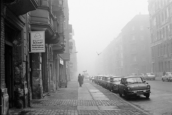 Des photographies de Berlin vide font songer à Atget, alors que le mur de séparation s’effondre.
