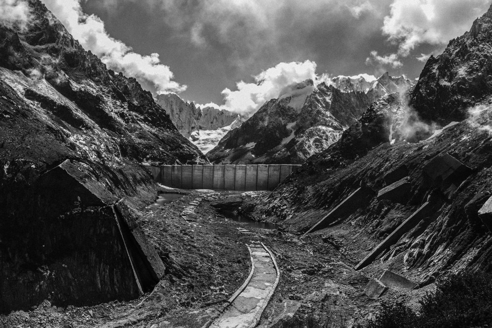 La minéralité évoque des territoires lunaires, que complexifient des marques anthropiques, souvent monumentales : barrages, tunnels, grottes cimentées, structures de grandes solitudes plantées dans le vertige des pics dentelés, chemins de pierres, câbles.