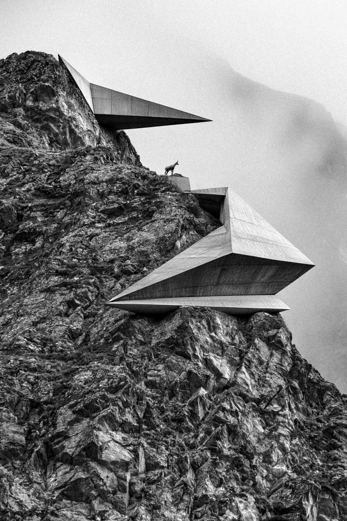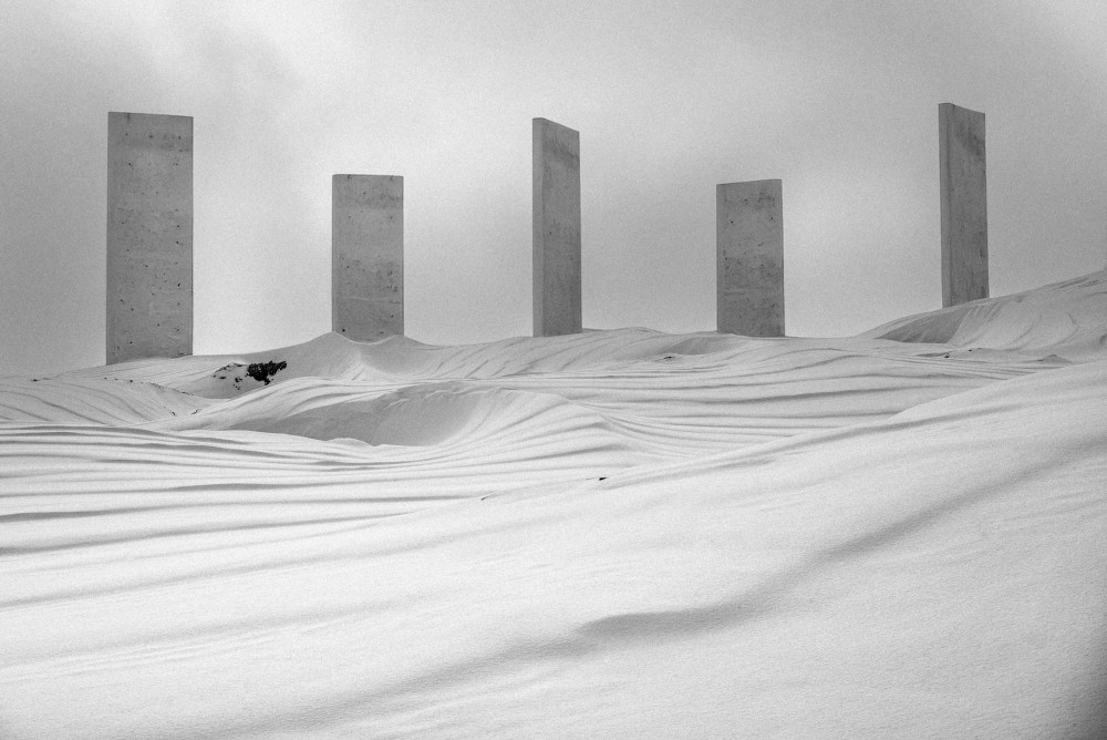 Quelqu’un a emballé la montagne, un amphithéâtre antique directement inspiré de celui d’Epidaure attend des spectateurs à plus de deux mille mètres d’altitude, des objets étranges balisent l’ensemble glacé.