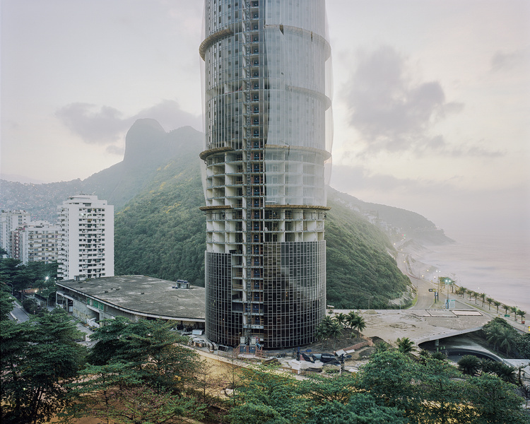 « Autour de ces habitants, nous découvrons l’accumulation des ruines du progrès dans des couleurs neutres et non saturées. Il y a des terrains vagues, des restes de chantier, des parkings sauvages, des viaducs suspendus au-dessus de la forêt vierge, l’odeur de la végétation et du pneu brûlé. Et une infinité de bâtiments austères, durs comme des projets AutoCAD [logiciel de dessin assisté par ordinateur créé en 1982] clonés dans le paysage, disséminés sans logique apparente dans l’ébauche des rues en zigzag, semblable aux vestiges d’un futur déjà révolu. » (Joao Paulo Cuenca)