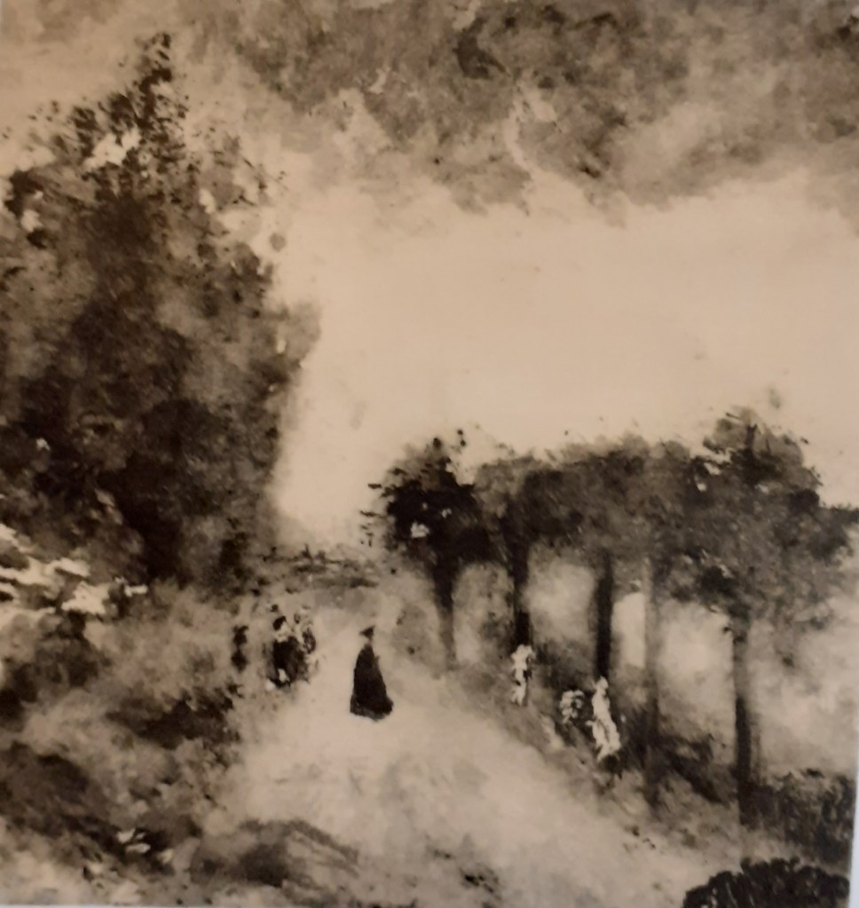 Passent des dames en sous-conversation, comme les arbres qu’elles frôlent de leurs robes noires.