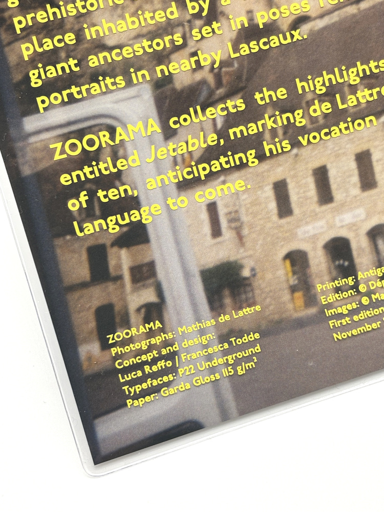 Se présentant sous très belle couverture transparente sérigraphiée, Zoorama est un acte libre, tant pour le photographe redécouvrant le regard de l’enfant de dix ans qu’il était, que pour son éditrice Francesca Todde, qui s’enchante de ce pas de côté éditorial.