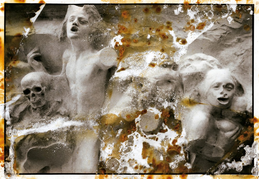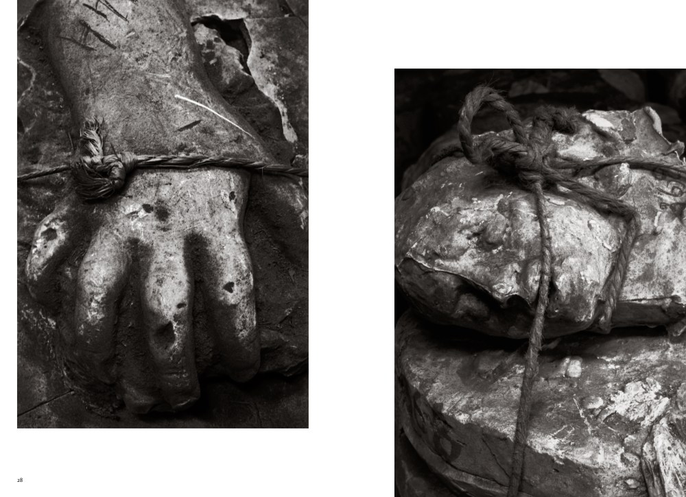 Le sol crisse, une corde passe à travers la bouche de pierre d’une femme étendue.