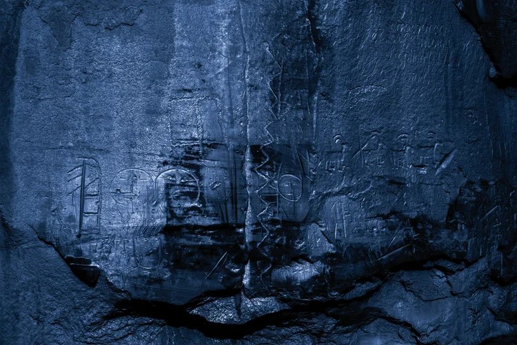 Il y a des inscriptions pariétales étranges dans une grotte, le temps lui-même semble se rassembler en chaque photographie, la flèche du temps se transformant en points d’intensités contenant toutes les époques.