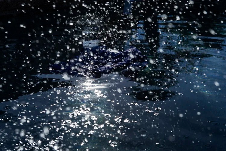 Un corps d’homme nu flotte dans les ténèbres, comme un grand fœtus dans son liquide amniotique.