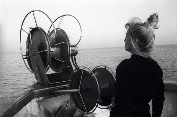 Une femme est étendue sur un lit dans une chambre donnant sur le port de Salina, en Italie – Bernard Plossu spirit.