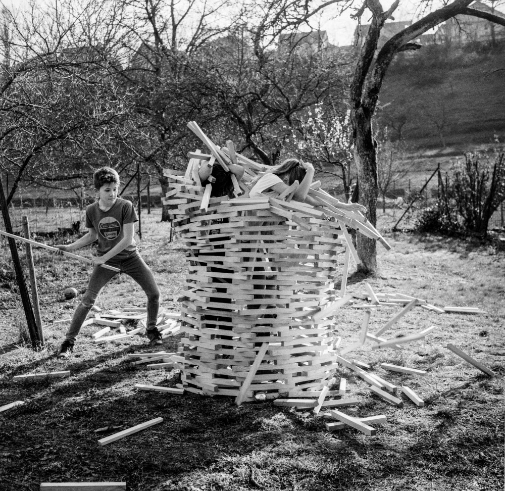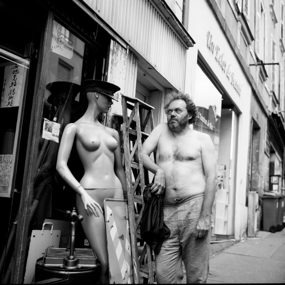 Ponctuant son existence de photographies, Pascal Bastien, qui tire lui-même ses prises de vue sur papiers argentiques Bergger, aime légender ses images prises au Rolleiflex de quelques mots pleins d’esprit et d’humour.