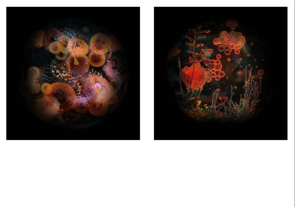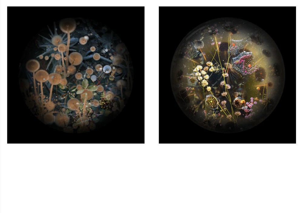 Beauté des tondo, épanouissement des structures florales polychromes sur fond noir, création de cosmos neufs.
