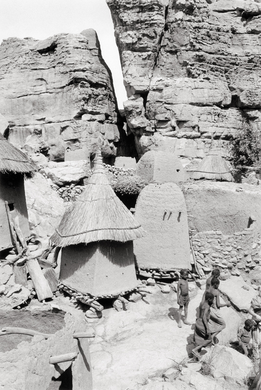 Des enfants, des portes en bois ouvragées, des fétiches, de la poussière, et des falaises habitées.